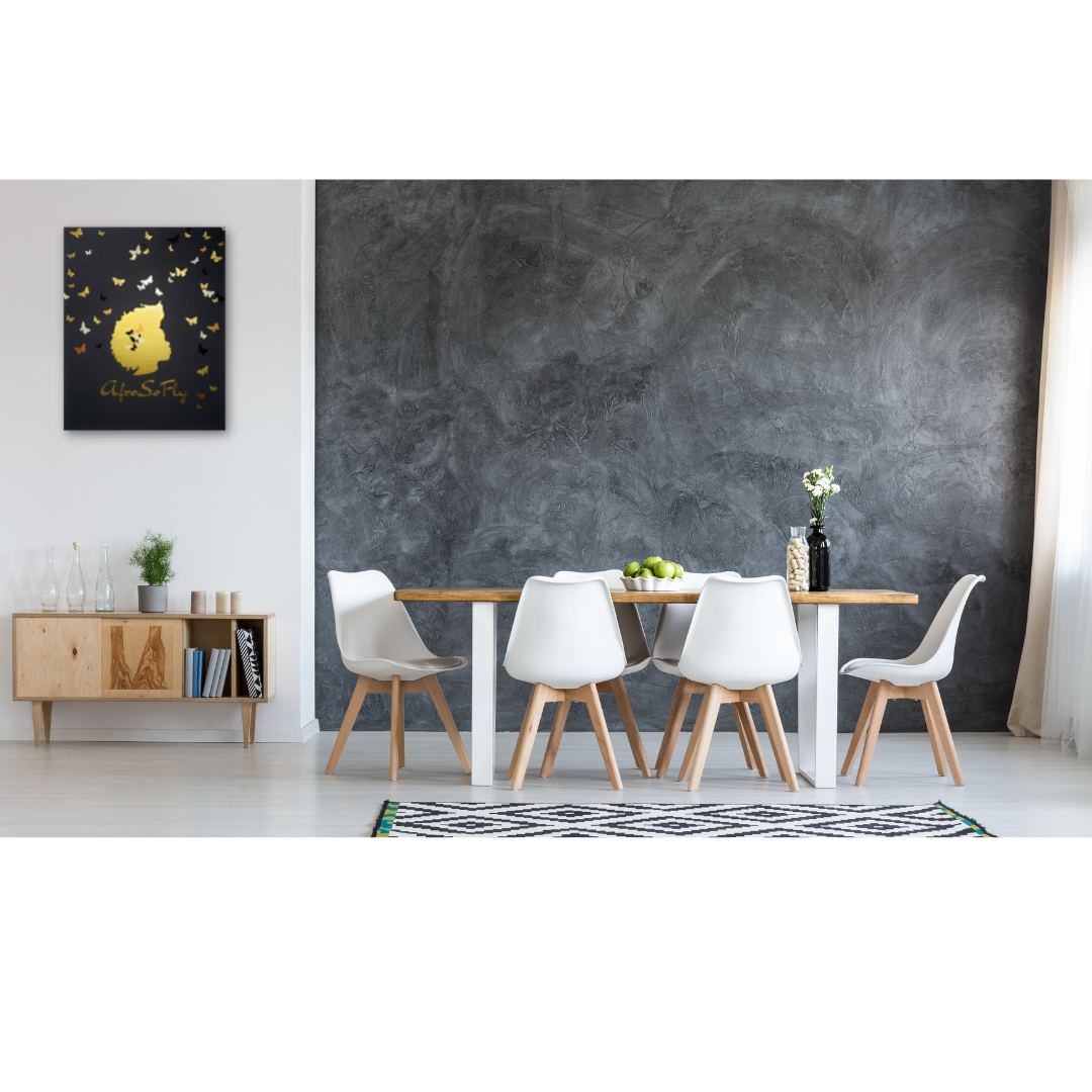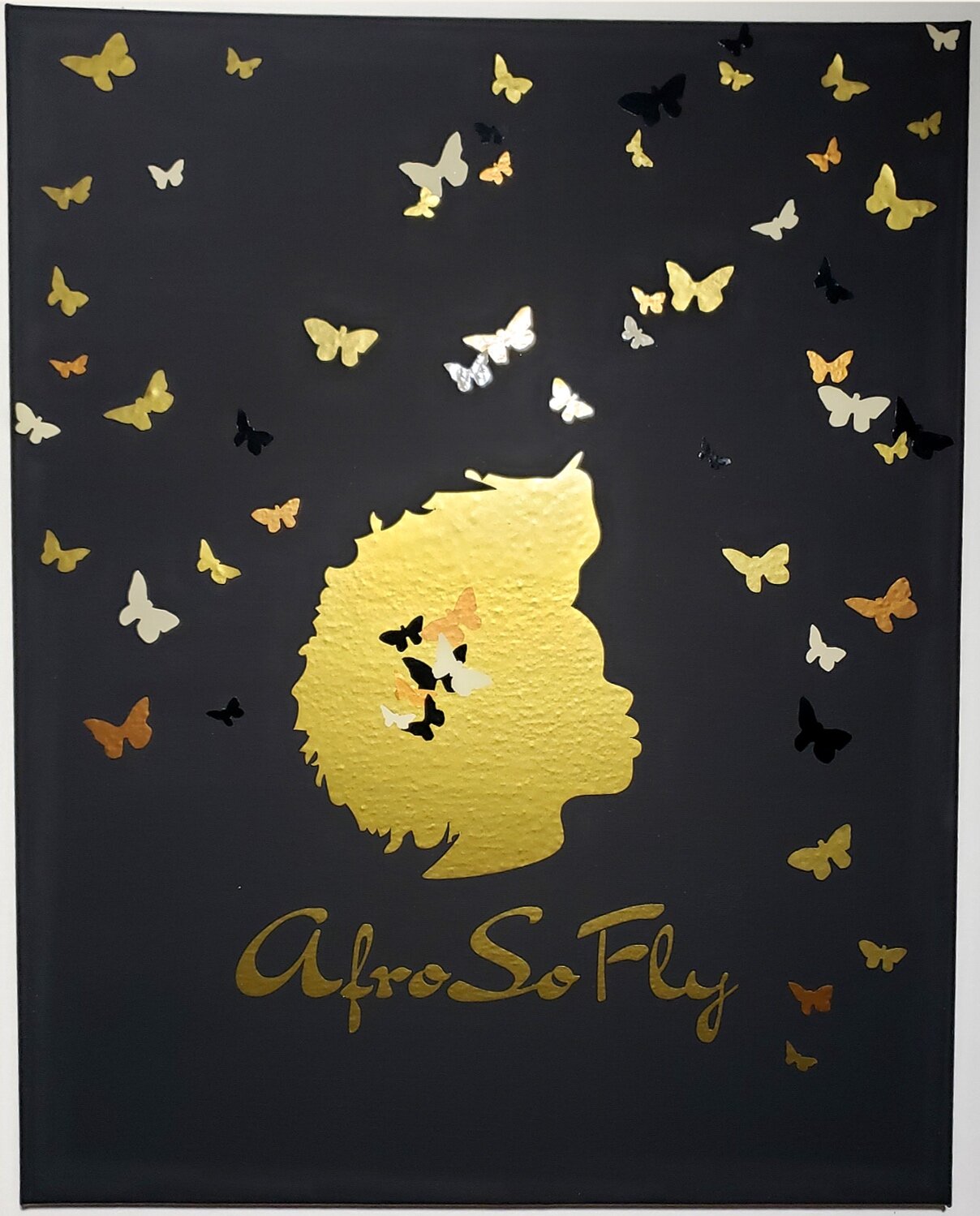 A beautiful, handmade 16x20 Gold Matte Butterfly Frohawk Canvas.